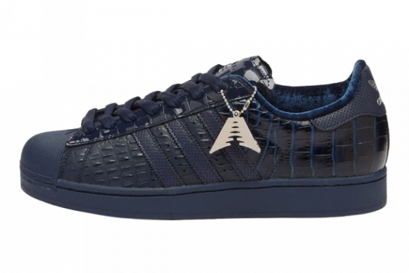 The Anthony Edwards x adidas Superstar “Navy Croc” elevates the classic silhouette with croc-embossed leather, metallic accents and premium finishes.