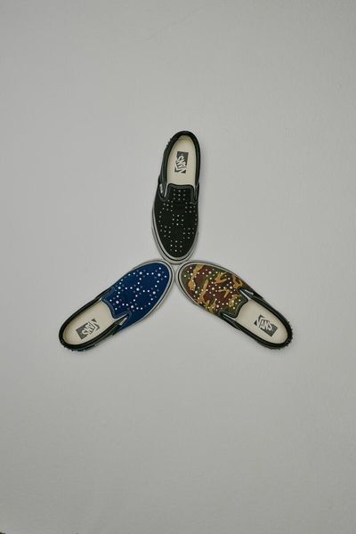 The Vans Classic Slip-On sits at the heart of this collection in three distinct colourways, Indigo, Black/Camo and Black/Black. Originally introduced in 1979 as Style 98, the Slip-On quickly became a staple in Southern California, moving from skate parks into wardrobes for casual outfits.