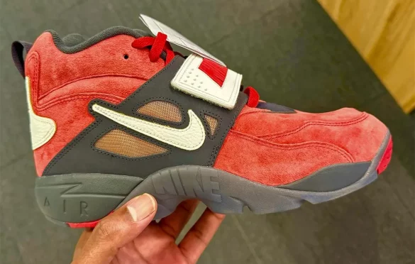 Drenched in rich red suede and contrasted with bold black overlays and crisp white Swooshes, the colorway is loud, confident, and unapologetically standout—just like Deion Jr. himself. Luxe gold touches on the lace loops and hangtag elevate the flash, while the heel branding swaps Nike’s standard mark for the Well Off Forever logo, staking this pair’s claim as something truly personal. The signature midfoot strap brings back the best of ‘90s turf trainer DNA, and breathable mesh panels add a modern comfort upgrade. It’s heritage meets hustle, with Deion Jr.’s imprint written all over it.