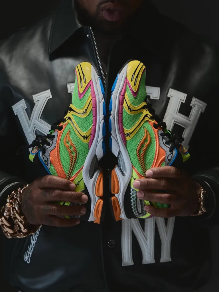 What makes the project interesting is how naturally it bridges two worlds, Saucony’s deep technical lineage and Gunn’s underground art direction, a palette that moves between high fashion, wrestling aesthetics, street gospel, and Buffalo grit.