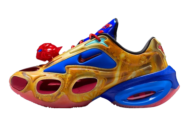 In contrast, the “Metallic Gold/Clearwater/Racer Blue/Chile Red” iteration leans warm and exuberant a festival-ready vision of movement and colour.
